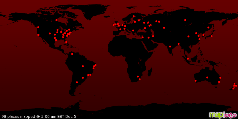 Map updates daily - Views updates hourly - Visitors list updates every 5 minutes