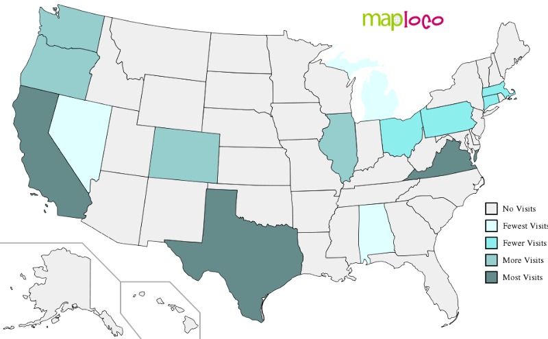 Visited Places Maps: US States, Countries, Europe, Canadian Provinces - More coming soon!