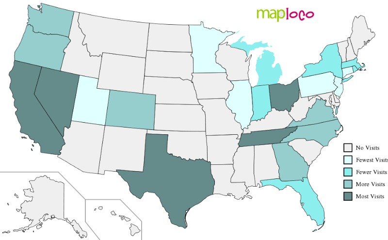 Visited Places Maps: US States, Countries, Europe, Canadian Provinces - More coming soon!