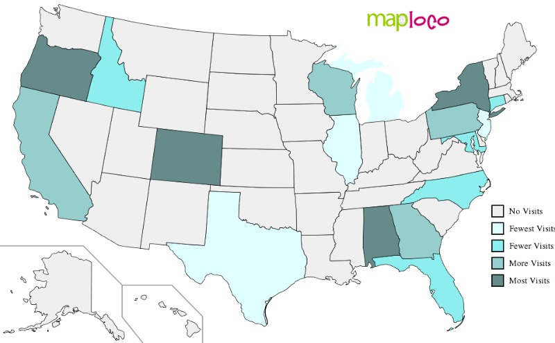 Visited Places Maps: US States, Countries, Europe, Canadian Provinces - More coming soon!