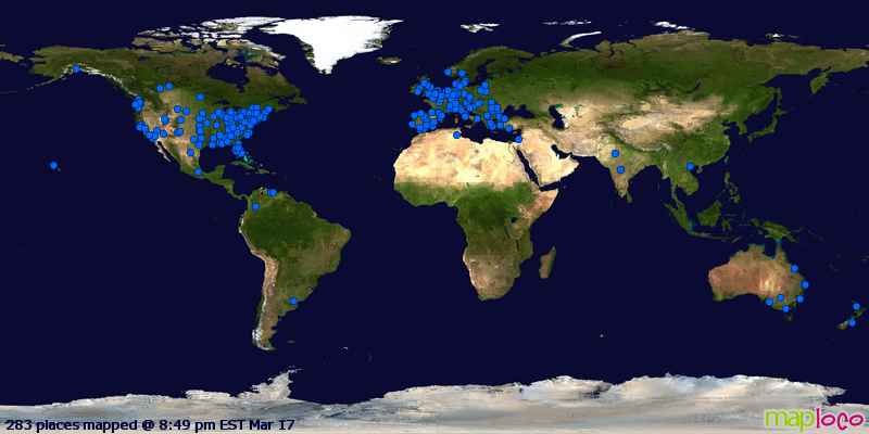 Map updates daily - Views updates hourly - Visitors list updates every 5 minutes