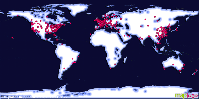 Map updates daily - Views updates hourly - Visitors list updates every 5 minutes