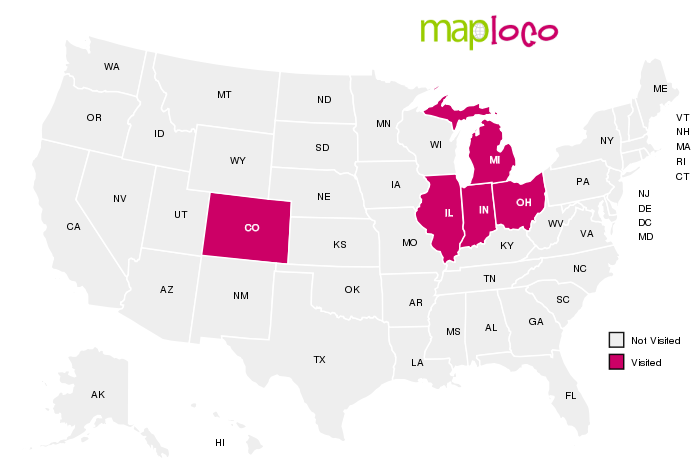 I've been to Colorado, Illinois, Indiana, Michigan and OhioWhat states have you been to?